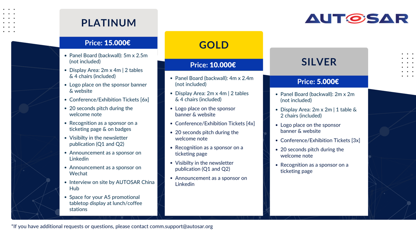 For sponsorship details or inquiries, please contact us at comm.support@autosar.org.